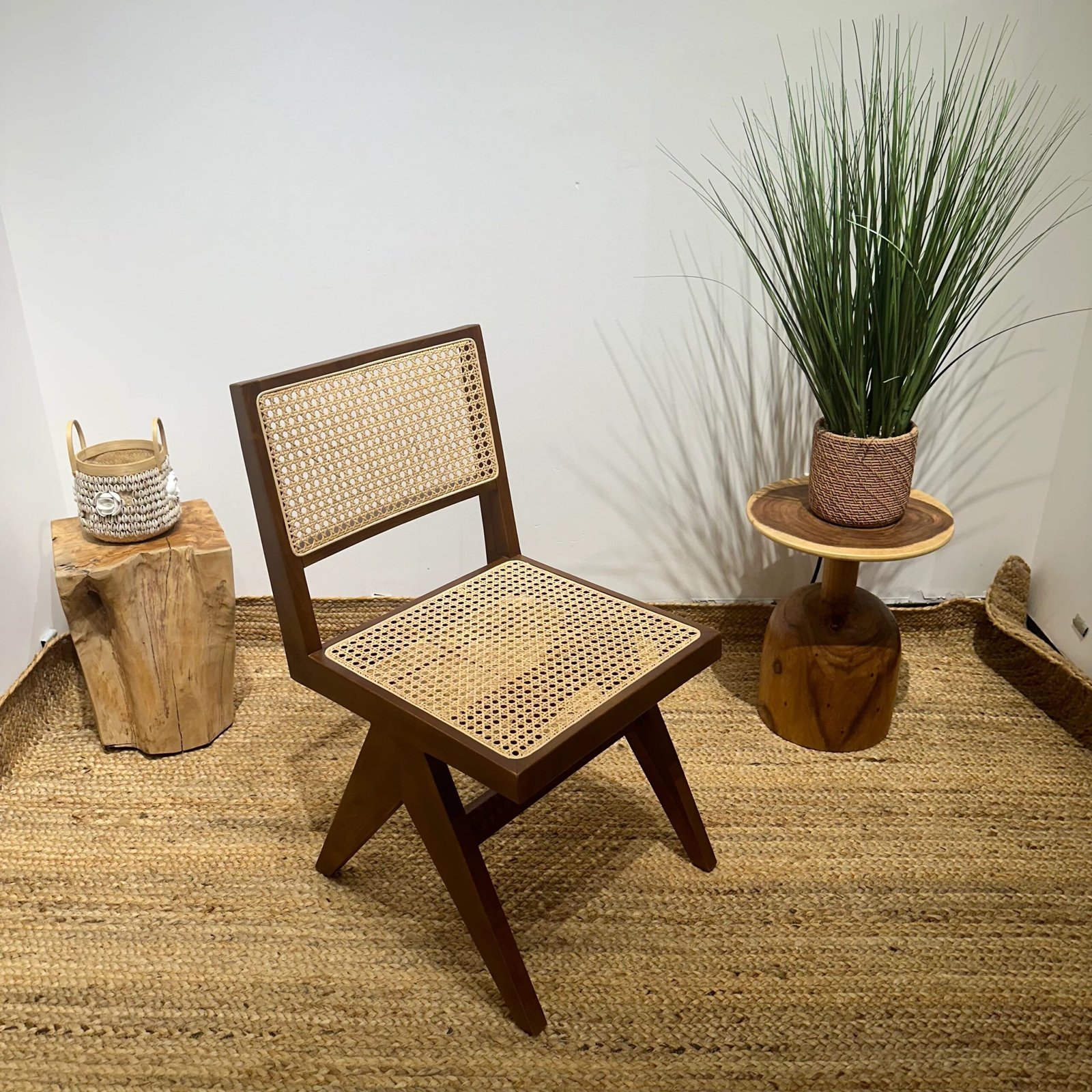 This handcrafted side chair blends solid natural wood with classic cane weaving, offering a timeless mid-century inspired silhouette.