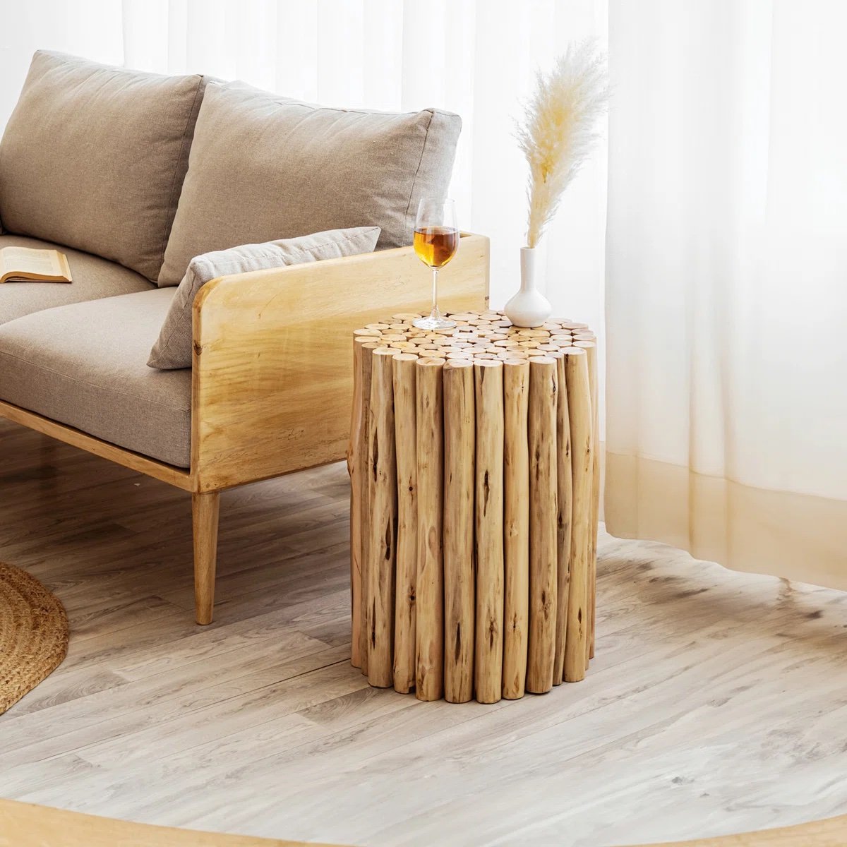 Carved from solid wood, this accent piece showcases smooth transitions and balanced proportions. Its sculptural presence makes it both functional and artistic.